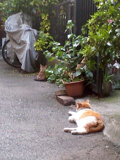 私「今日は一人?」 ネコ「ふたり。」 私 「どこ?。」 ネコ「あそこ。」 関帝廟通りの、さる小道にて。 中華街のキャット・ストリート。 お越しの際は、 岩など めくってみて下さい。 猫がワラワラ居るはず。