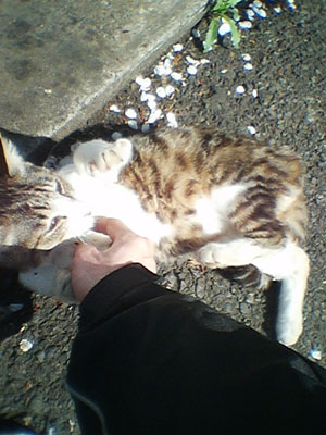 >外猫ちゃん?良くなついてますね。